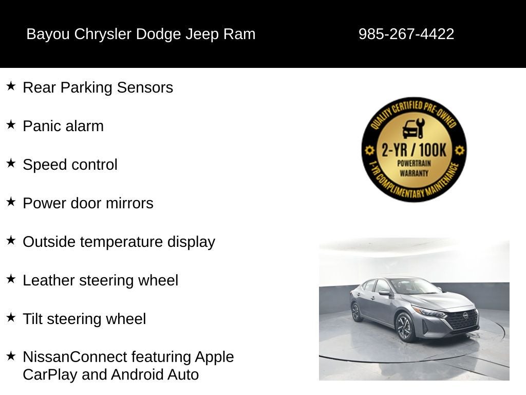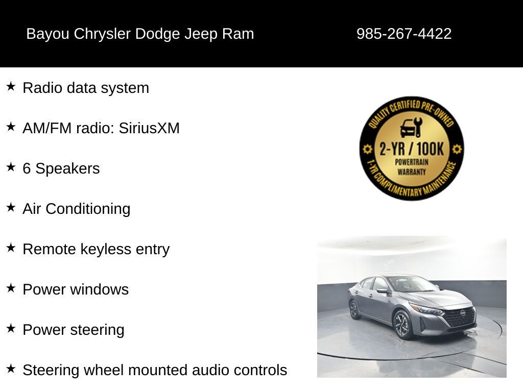 Bayou Automotive is proud to offer this certified pre-owned Nissan Sentra SV. Our rigorous 100-point inspection process ensures this vehicle meets the highest standards of quality and reliability. You can purchase with confidence, knowing this Sentra has been thoroughly evaluated and reconditioned to provide you with a worry-free ownership experience.